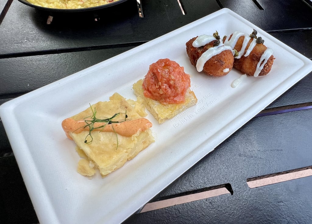 Also found at the Spain booth, the Trio de Pintxos ($7.25) brings the flavors of tapas to EPCOT. The Pan con Tomate is bright and flavorful, with olive oil and tomato soaking into crunchy bread. While incredibly tasty, I wished that the portion was bigger. The Tortilla Española is hearty but could have been lighter and fluffier, while the croquetas are fried to golden perfection with a creamy béchamel center. The combination of three small bites makes it a perfect sharing plate and a great way to sample classic Spanish flavors in one stop.