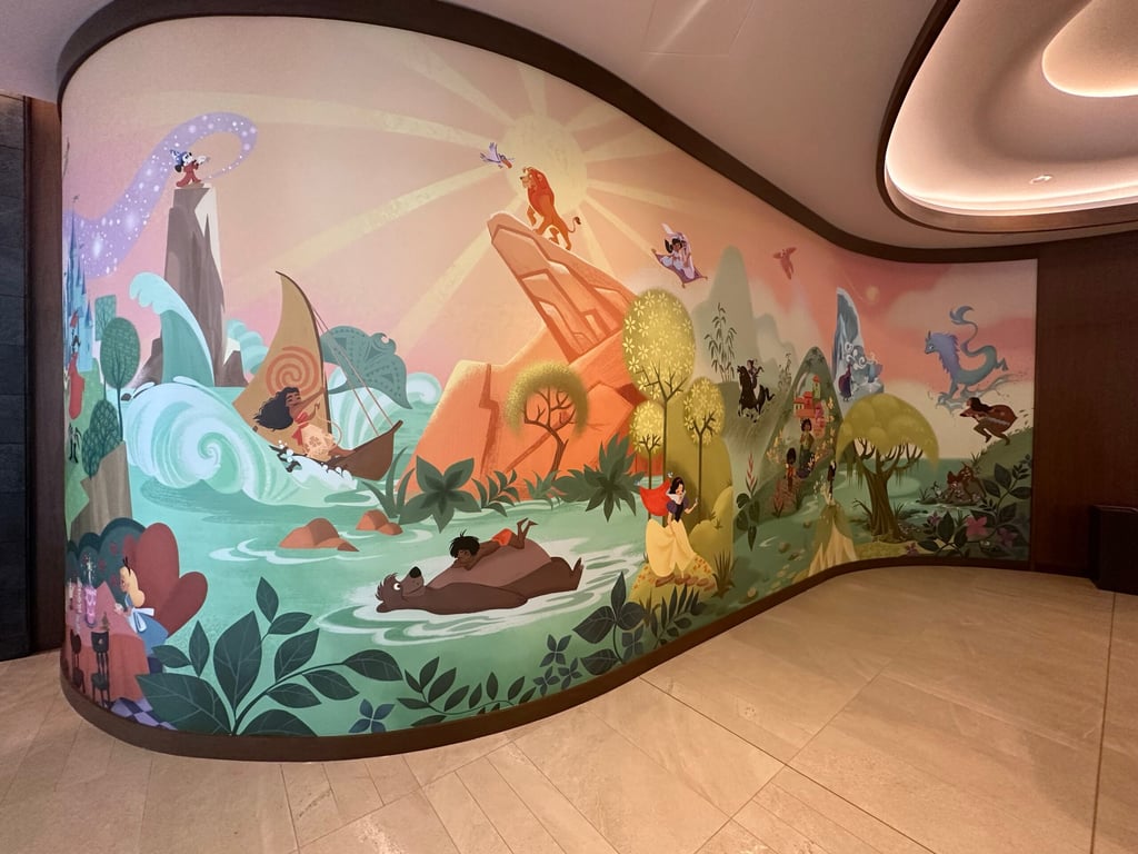 In addition to the wonderful details found in the villas, you will find lots of animation-inspired artwork throughout the lobby and common areas of the resort. Upon entering the lobby, you will see a mural by Lorelay Bové, associate production designer of “Encanto,” that features over a dozen vignettes of Disney animated films and several hidden Mickeys. There is also a Sleepy Beauty Castle mosaic near the entrance of the lobby that is composed of photos of DVC members!