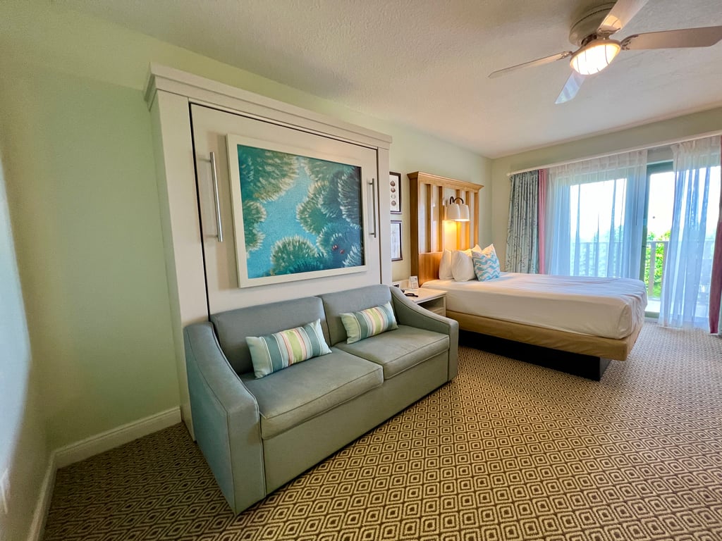 Murphy beds came to Vero Beach Resort during last fall’s refurbishment. The room before my new favorite piece of furniture cam to town was lovely. It was a great space, and featured two queen sized beds. It was what you’d expect from a Disney resort room. But what the room is now is even better, and, one might say, completely unexpected.