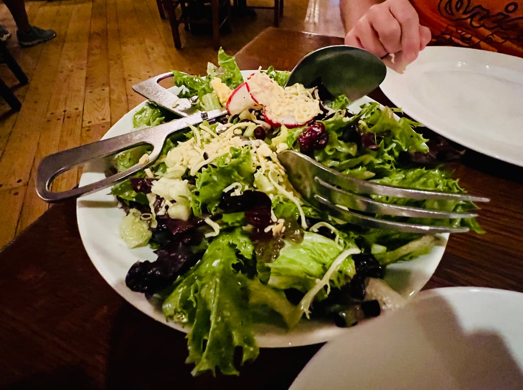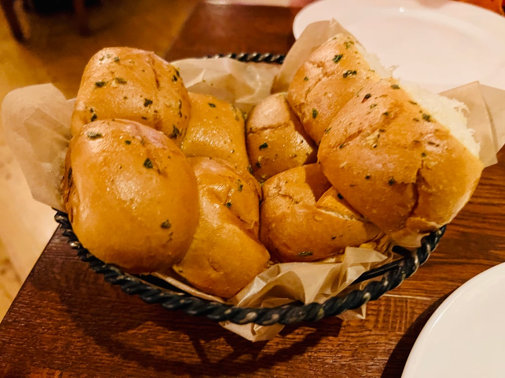 The meal begins with warm, buttery herb rolls. Your meal also comes with your choice of soda, lemonade, milk, coffee or tea. The Declaration Salad had a bright, slightly sweet flavor thanks to that onion-forward dressing, and our server Ben (more on him soon!) brought out extra plates and plenty of fresh rolls to get us started.