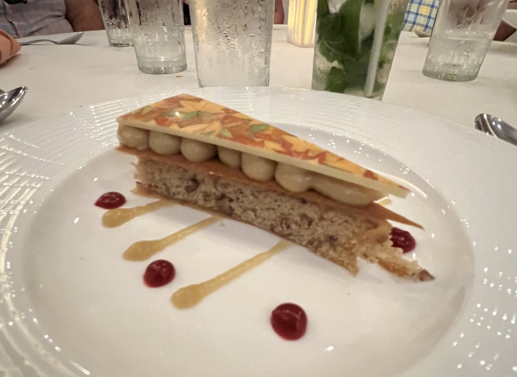 Based on the description, I expected buttery layers of pastry, but the base was more dense than flaky. The maple flavor in the cream was lovely, but overall the dessert felt a bit lackluster.