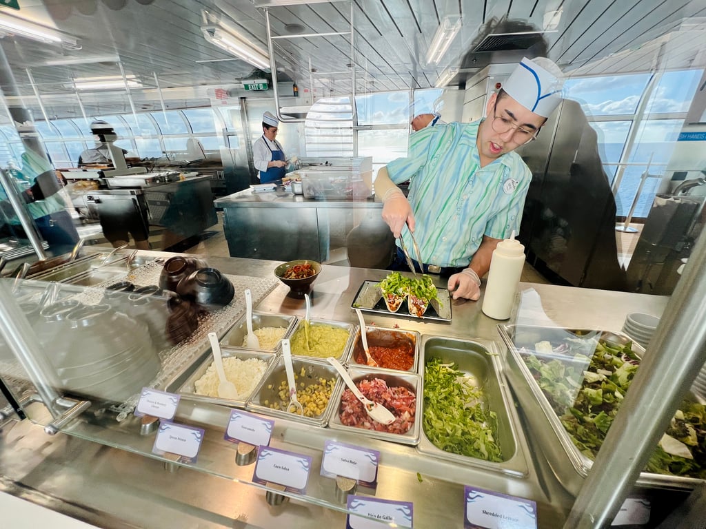 If the idea of a cantina being an option among a DCL ship’s counter server offerings, you’d be right. Donald’s Cantina on the Disney Wish was a slam dunk hit with guests from the word go when the ship first sailed back in 2022. We hungry cruisers couldn’t get enough of the fresh, Chipotle-adjacent build-your-own burrito bowls and tacos spot, and out of all of the options offered in the Mickey & Friends Festival of Foods area, Donald’s Cantina was the one with the consistently longest lines.