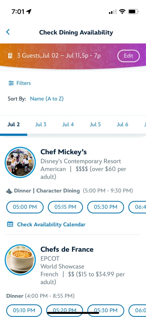 The latest round of updates for Disney World’s and Disneyland’s websites and apps make it even easier to search for dining reservations.