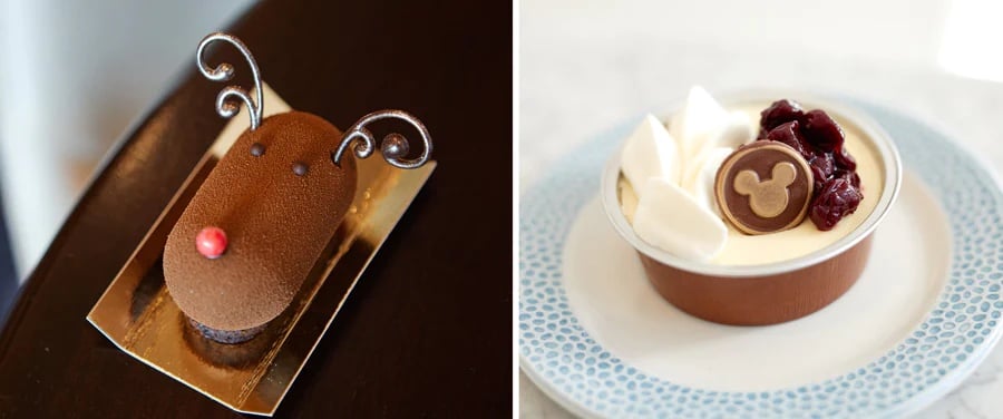 - Holiday Mickey Cupcake – Vanilla cupcake filled with vanilla mousse topped with holiday décor and chocolate Mickey ears (available Dec.1-31)