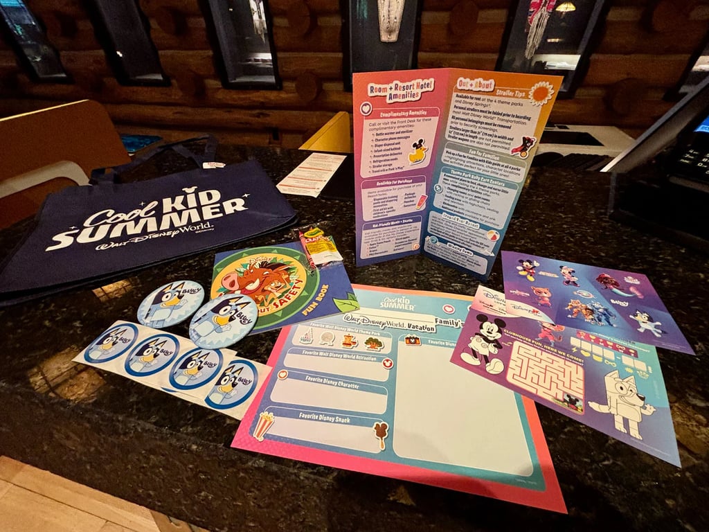 The fun isn’t limited to the theme parks. At select resorts like Wilderness Lodge, every child will receive a reusable bag with crayons, stickers, coloring sheets with activities, and Bluey buttons at check-in. At Wilderness Lodge, you’ll find the activities like the Wake Up Shake Up Party at the boat dock, a Pajama Party on the lawn by Reunion Station, characters inside and outside the lobby, and Disney Fan Family Fun interactive games.