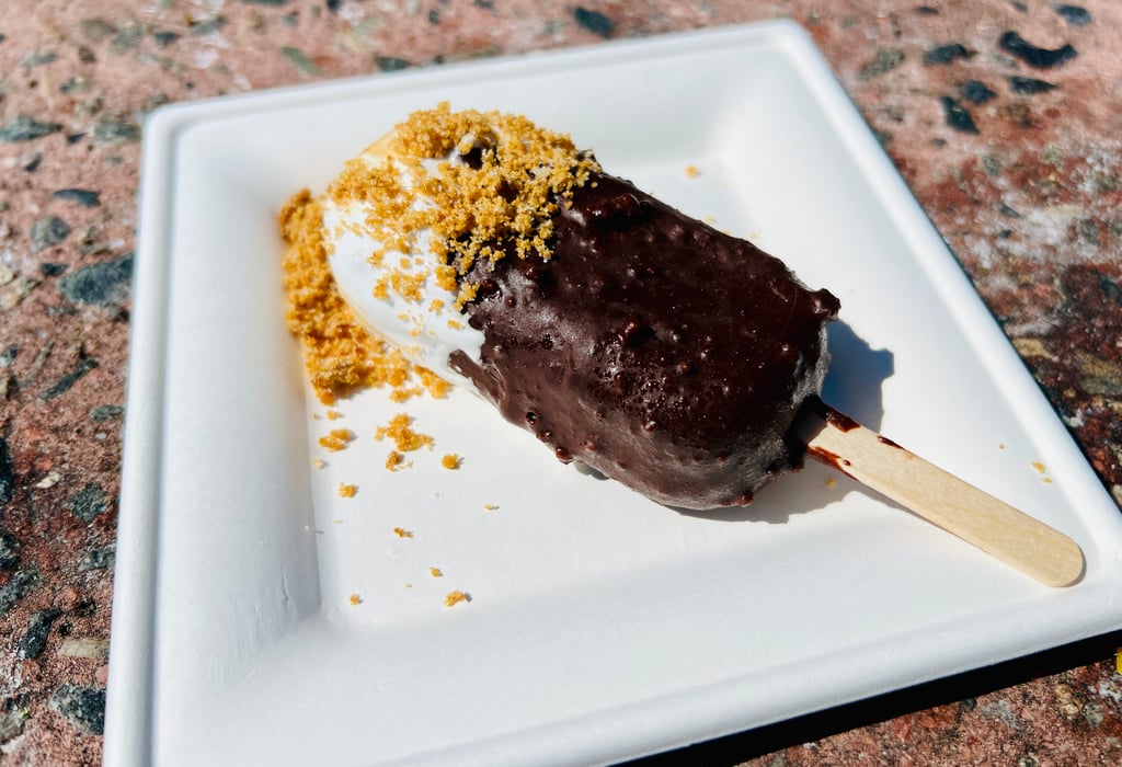The S’mores Bar was originally found at the Beach Grub Outdoor Kitchen during this year’s festival, and it quickly became known for its social media-worthy look. It’s a fudgy brownie that’s been coated in dark chocolate and topped with toasted marshmallow fluff and smoked graham cracker crumbs. Trust me when I say that smoked graham cracker crumbs are the thing you didn’t realize you needed in your life, but you do. They completely make this sweet treat, and you’ll be snapping a picture for Instagram as soon as it’s handed to you by the cast member. Guaranteed.