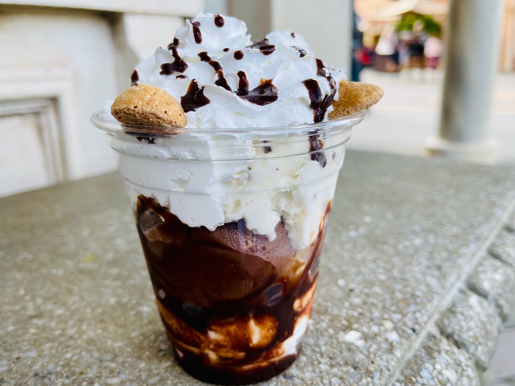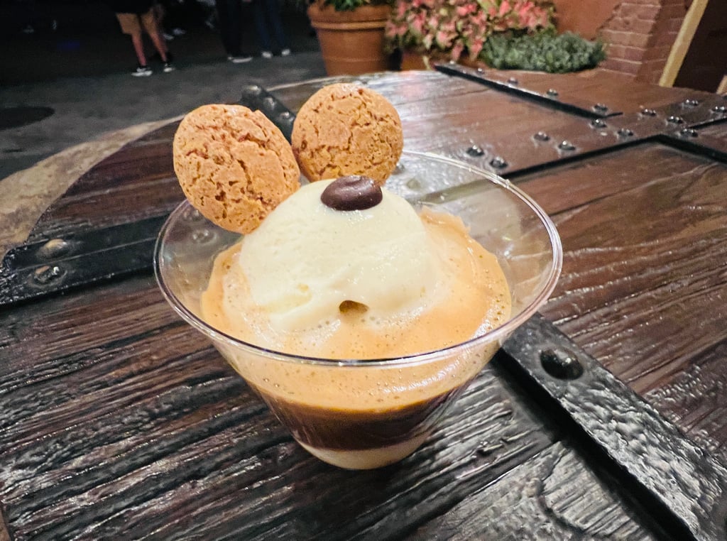 If sundaes are your thing, you can’t go wrong with the Coppa Del Nonno. Three scoops of gelato (Chocolate, Vanilla, and Cookies & Cream) are topped with chocolate sauce and whipped cream. And those little cookies on top? They’re crispy amaretto superstars, friends. Delicious and crunchy, these cookies pair beautifully with the rich and creamy gelato. Yes, the ice cream in the France pavilion is your go-to, but why not shake things up a bit next time with something Italian?