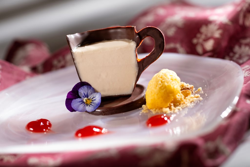 - Sparkling Spectacle Gâteau: Vanilla bean mousse with a golden caramel center and apricot jam on a hazelnut cookie (New)