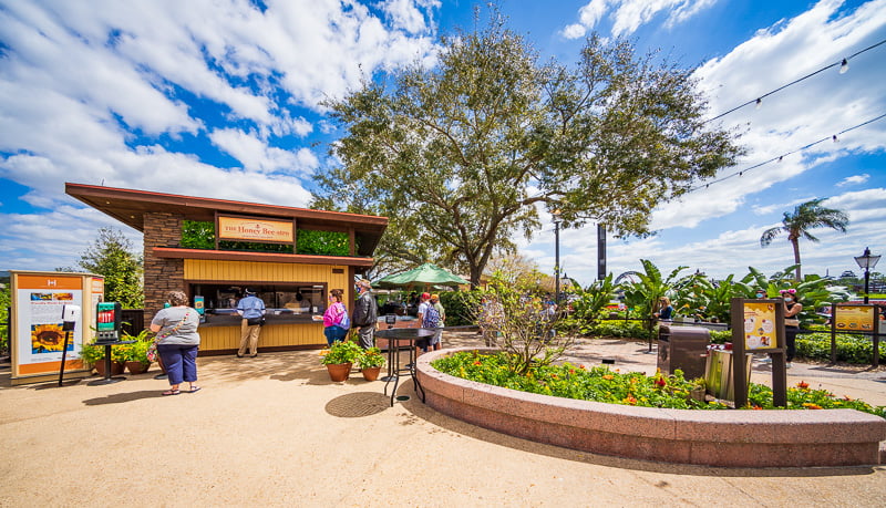 - The Citrus Blossom at the Odyssey is a nice indoor spot with tables and chairs, which is much more comfortable than eating at the traditional EPCOT trash can. Orange Bird fans will also love the merchandise here!