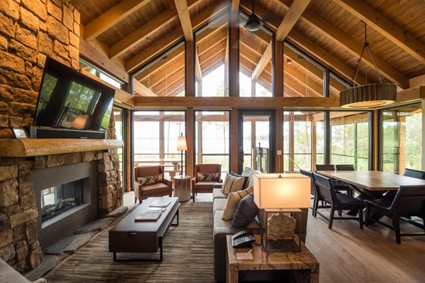 Exclusive to Copper Creek are the Cascade Cabins along Bay Lake. These rustic chic cabins have two bedrooms with space for up to 8 guests. Besides having a full kitchen and washer/dryer like the One Bedroom Villas and larger accommodations, the cabins have some unique features like a double-sided fireplace and a screened-in porch with a hot tub.