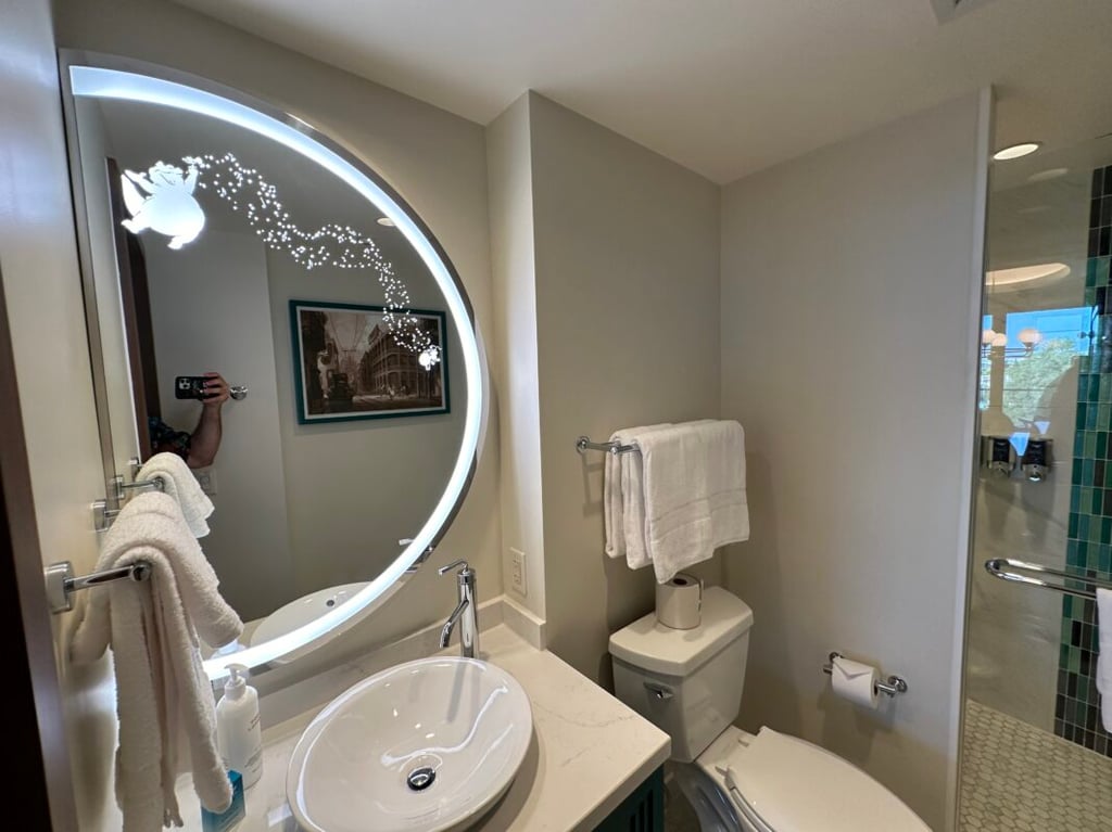 Fans of Disney’s animated films will appreciate all the details in the rooms and throughout the common areas. The villas are themed after movies like “Jungle Book,” “Sleeping Beauty,” “Fantasia,” “Princess and the Frog,” “Frozen,” “Moana,” and “Bambi.” From the themed headboards and bathroom mirrors to the vibrant hues that match the color palettes of various Disney movies, there are lots of nods to favorite films everywhere you look!