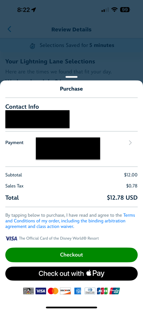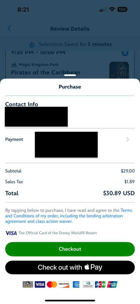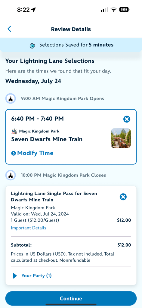 - Finalize Selection: The system holds your selection for up to five minutes while you finalize and make your purchase. The app will choose the best available time for your attraction, but you can modify this if needed.