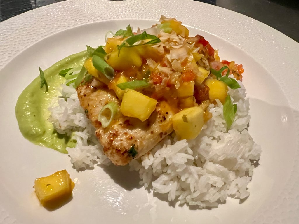 The entree that I chose was the one that’s used as the featured image for the restaurant in the My Disney Experience app: the Grilled Snapper ($35). The ceramic plate that was placed before me was huge, but the piece of fish was not. Don’t get me wrong; I loved this dish. The fish was moist and the mango salsa that accompanied it brought a fabulous flavor to the dish. The portion, however, wasn’t the same as shown in that beautiful featured image, and I left the restaurant hungry. It’s been a long time since that’s happened.
