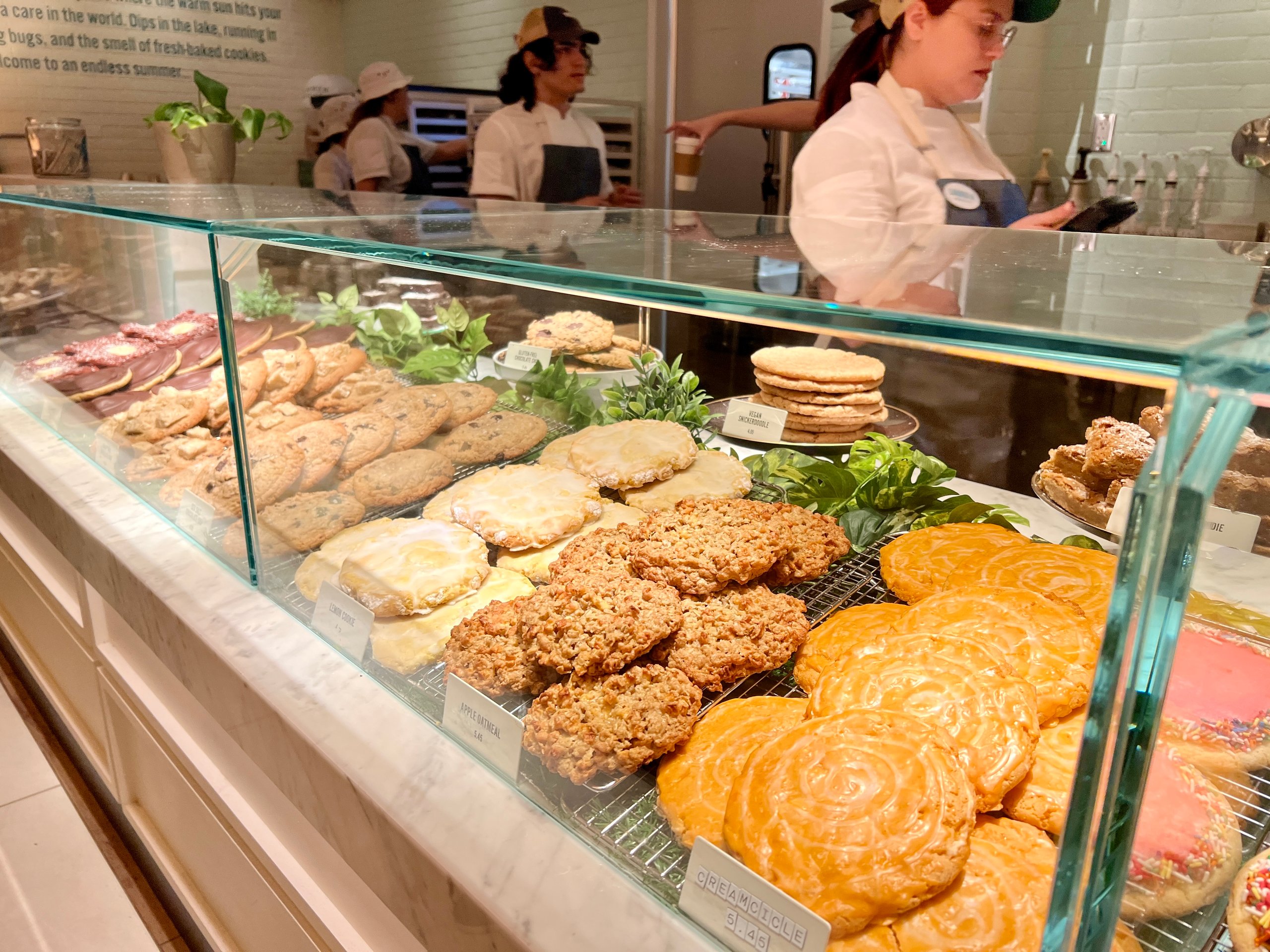 My favorite is the Lemon cookie. It’s a pucker-inducing, chewy, sugar-glazed treat that packs a punch in the very best way. Also on my list of must-tries is the Creamsicle cookie. If you love the summertime flavor combination of orange and vanilla, this cookie deserves top billing.