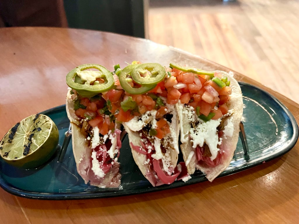 If I were to choose one dish that came in lower on my “must-eat” list, I’d pick the Adobo Chicken Tacos ($12). Don’t get me wrong; this is getting fairly picky because the flavor of the shredded chicken and the complex layering of the ingredients added to the overall dish. But the tacos fell apart quickly, and the dish ended up being more of a taco salad with soggy tortillas.