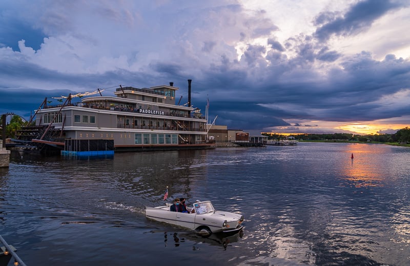 Disney Springs doesn’t have rides beyond the Marketplace Carousel and Marketplace Train Express. However, it does offer some cool experiences like the Aerophile and Vintage Amphicar Tours. The Aerophile is an 8-minute ride in a hot air balloon. On a clear day, you can see stunning views as far as 10 miles away. The Vintage Amphicar Tours are 20-minute rides along Lake Buena Vista in a rare amphicar that both drives on land and floats on water!
