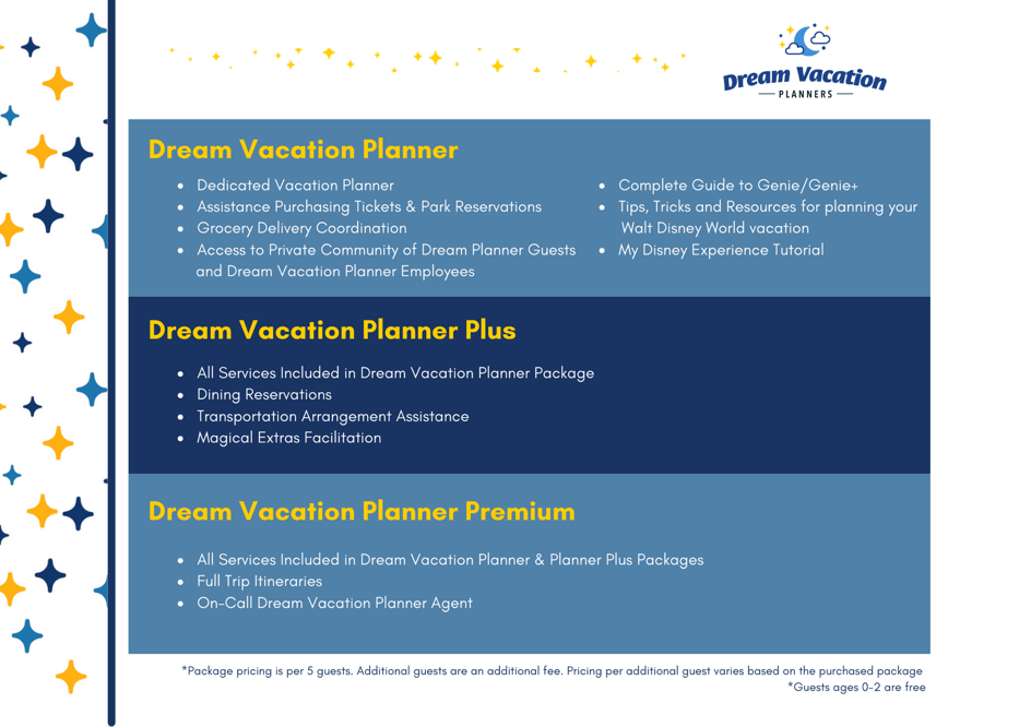 Our Dream Vacation Planner Packages offer DVC Members the ability to choose just how much assistance they are looking for when planning their next Walt Disney World vacation! Members can choose from one of the following package options: