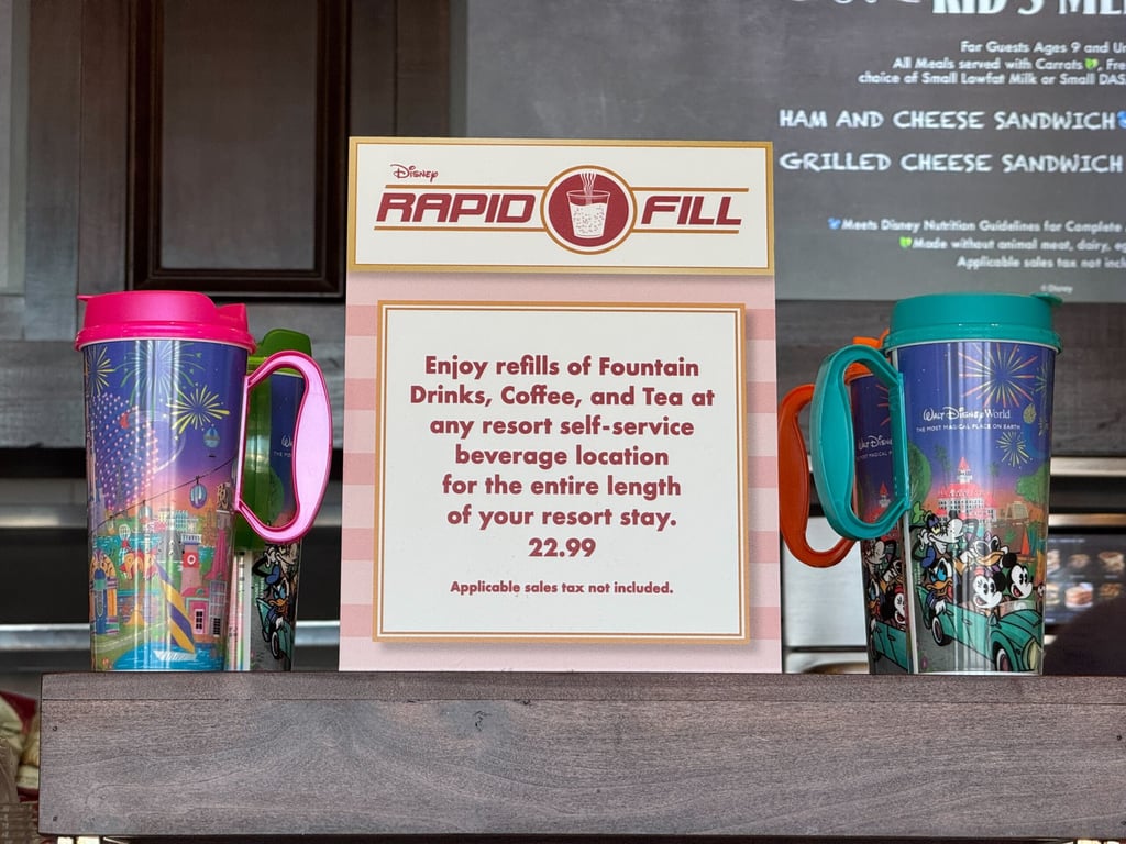 As of 2025, resort refillable mugs cost $22.99 plus tax. You can purchase them at the quick service location of your resort.