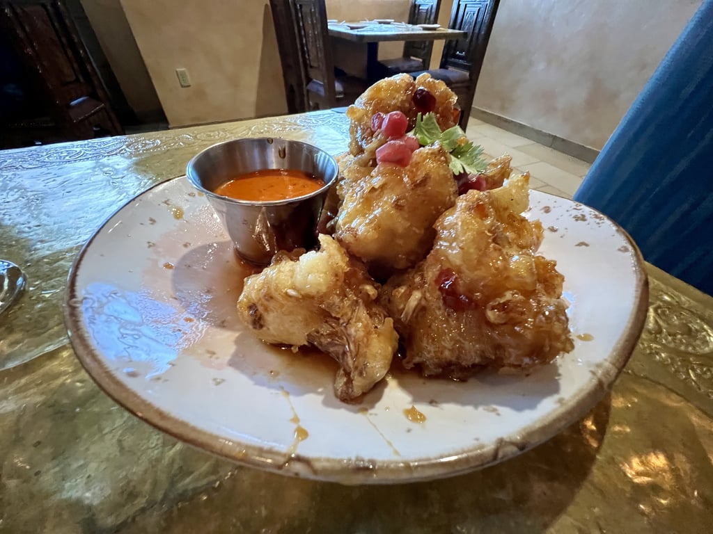 I had always thought of Spice Road Table as an outdoor-only dining location, but stepping inside to discover its bright, airy indoor dining room completely changed the experience. The Moroccan-inspired details, cool air, and comfortable seating created a calm oasis from the Florida heat and park crowds. It instantly elevated the meal for me, turning what I expected to be a casual (and somewhat sweaty) meal into a truly memorable dining experience.