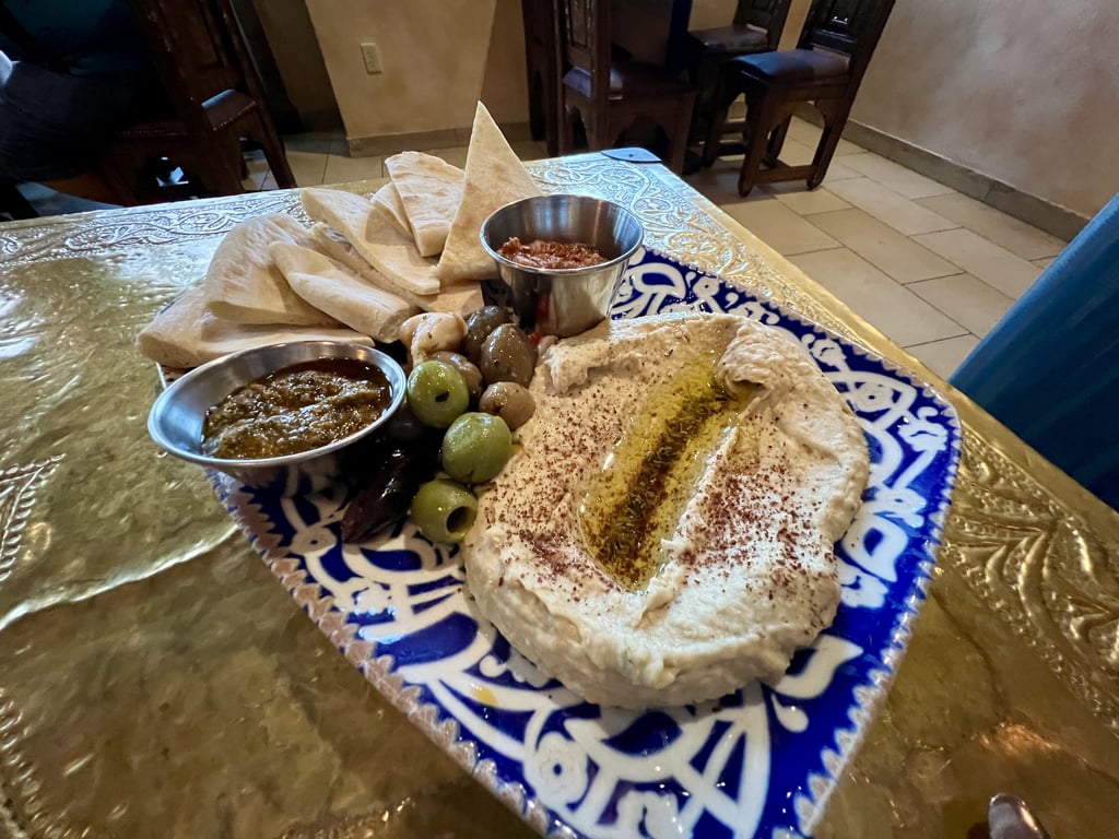 Spice Road Table Bread Service: If you enjoy hummus, this dish is for you. It’s garlicky, covered in rich olive oil, and comes with plenty of pita bread.