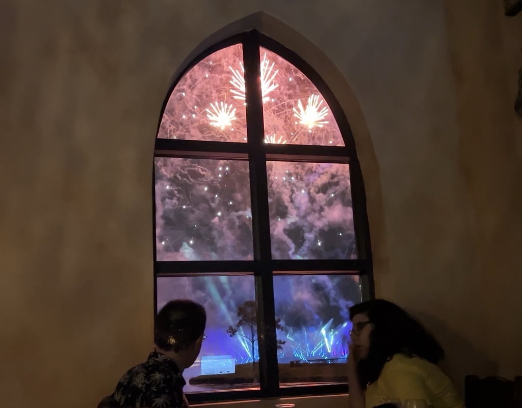 Here’s a bonus I did not expect: while Spice Road Table’s indoor dining room doesn’t advertise itself as a “fireworks dining package,” the timing of your meal could work out so that you catch EPCOT’s nighttime spectacular right from your table. The eleven indoor tables offer views through the space’s massive windows. It’s not something to plan around, but if your dining time happens to align with the show, it’s a magical surprise.