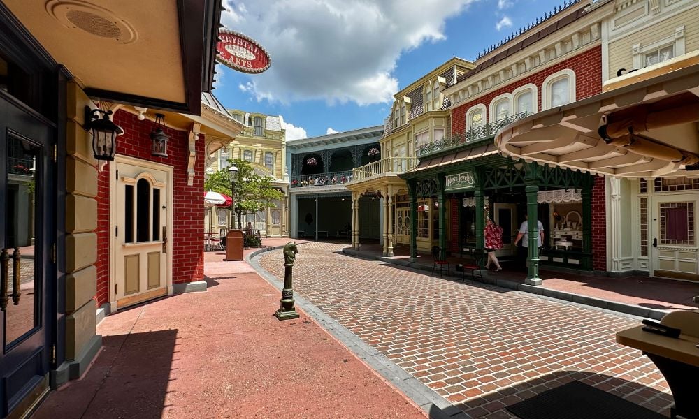 Main Street, U.S.A. always seems to be bustling, but if you make a right after Uptown Jewelers, you’ll come across a quaint little side street. This is Center Street. You’ll find a few tables and chairs and a small inlet with shade in this quiet area.