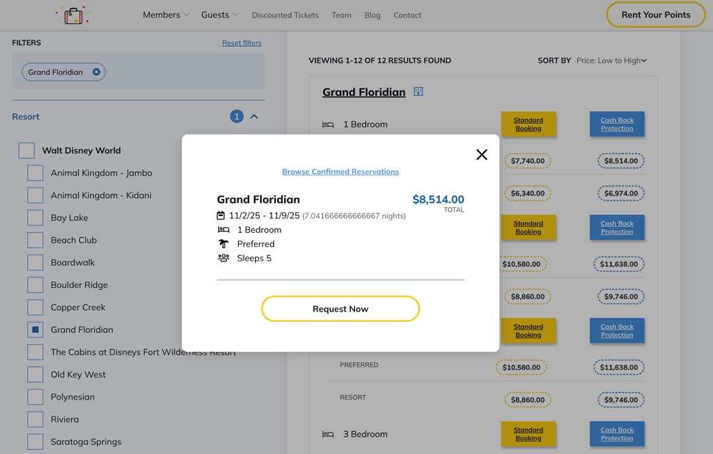 Your journey begins with exploring the DVC Rental Store website. Our DVC Points Quote Page allows you to browse all available Disney Vacation Club resorts, including popular favorites like Disney’s Polynesian Villas, Bay Lake Tower, and Animal Kingdom Lodge. You can: