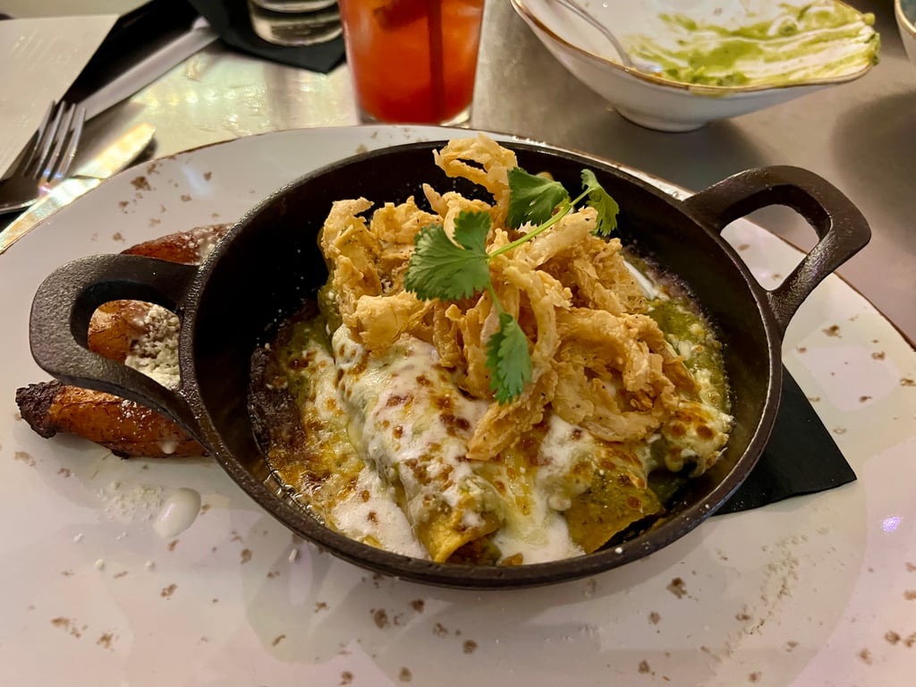 My entree is something that I cannot wait to return to enjoy again. I chose the Chicken Enchiladas ($30), and what arrived to the table was glorious. Three chicken tinga enchiladas were served absolutely covered in Oaxaca and Chihuahua cheeses. It was a fabulous, melty situation, and I was in cheese heaven.