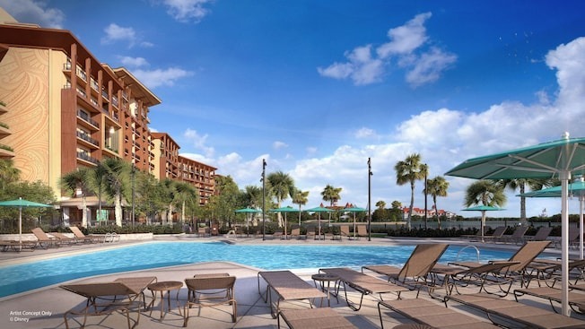 The Island Tower is also home to the brand-new Cove Pool, a zero-entry pool perfect for families who want to spend time relaxing in the Florida sun. The Moana-themed splash pad area, featuring Moana and her Wayfinder, adds a whimsical touch that young kids will adore. During our recent visit, we were thrilled to see that the Cove Pool has already been filled and is nearing completion. Only some lounge chairs and minor touch-ups remain as the countdown to opening day continues.