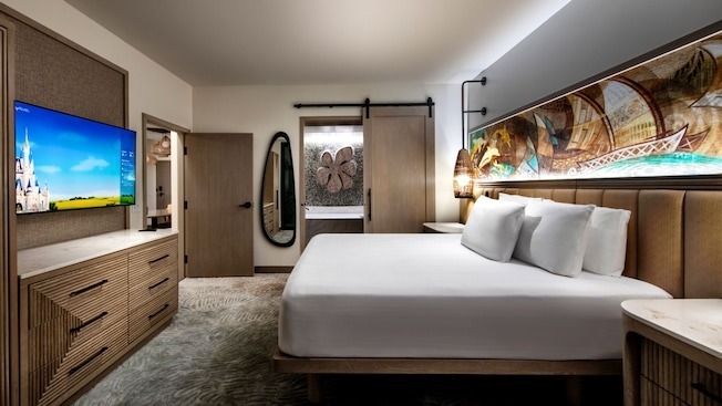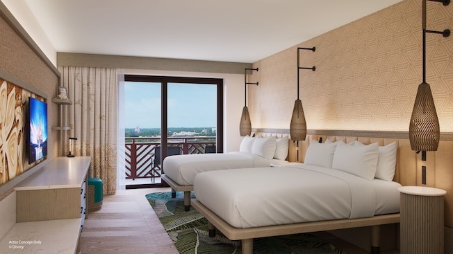- Duo Studios: Drawing from the stars and sky that guided ancient wayfinders in celestial navigation, the luminous and spacious pair of studios will provide an ideal sanctuary for two individuals. This room features a Queen-Size Pull-Down Bed, accommodating up to 2 adults. Ideal for couples, it includes a full bathroom, a kitchenette with a microwave and small refrigerator, and a porch or balcony for added comfort. The Duo Studio balconies feature glass railings that allow for uninterrupted views of the resort.
