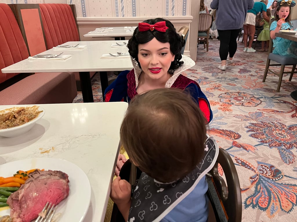 Since there is no charge for children under the age of three for character dining, it can be a great way to have your child meet multiple characters at once. Even better, you don’t have to wait in line to see them–they come to your table!