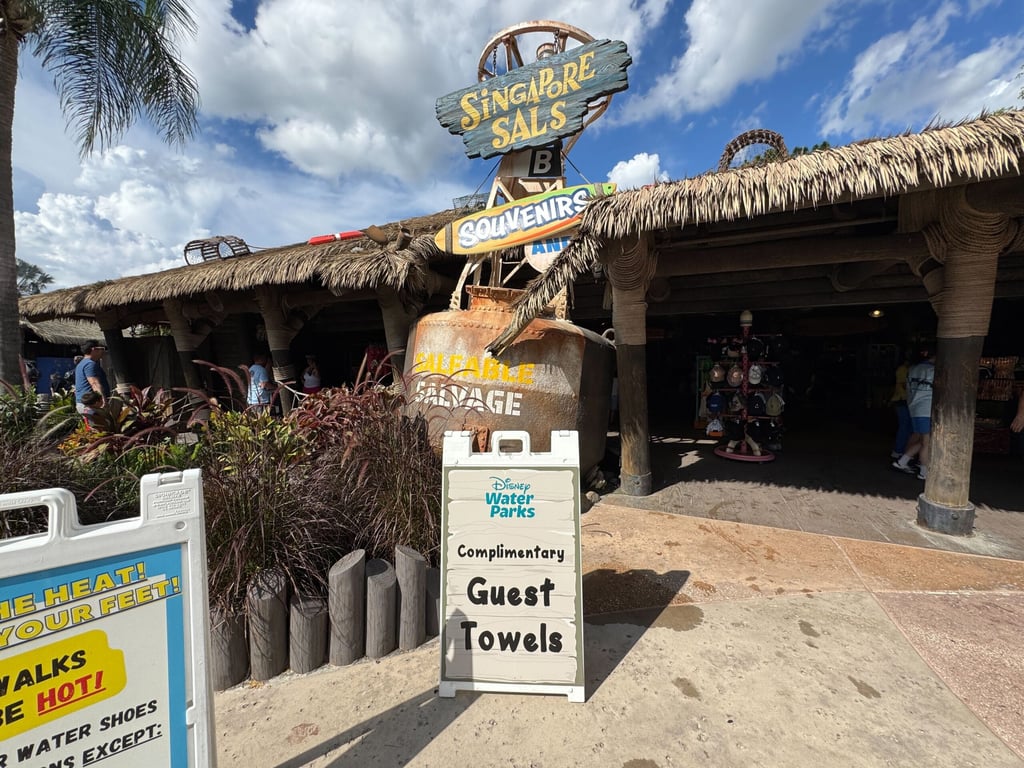 One thing you will not need to bring is a towel. The water parks provide complimentary towel rentals for Disney Resort guests. You can pick them up from Singapore Sal’s and High ‘N Dry Rentals at Typhoon Lagoon or Beach Haus at Blizzard Beach. You just need to show your MagicBand or Key to the World Card to pick up the complimentary towels.
