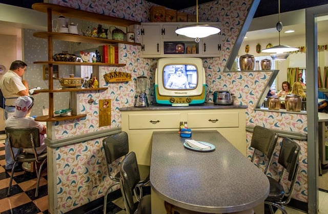 In Hollywood Studios, step into Mom’s kitchen for comfort food like fried chicken, meatloaf, and pot roast. You’ll be transported to the 1950s both through the retro kitchen decor and the black-and-white television segments you can watch while eating dinner. The cast members here will truly treat you like family, so be sure to be on your best behavior, and keep your elbows off the table!