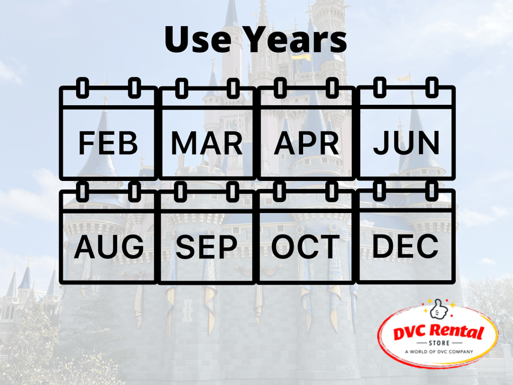 Interestingly, there are only 8 months with Use Years: February, March, April, June, August, September, October, and December. The other months: January, May, July, and November are never used as UY with Disney Vacation Club.