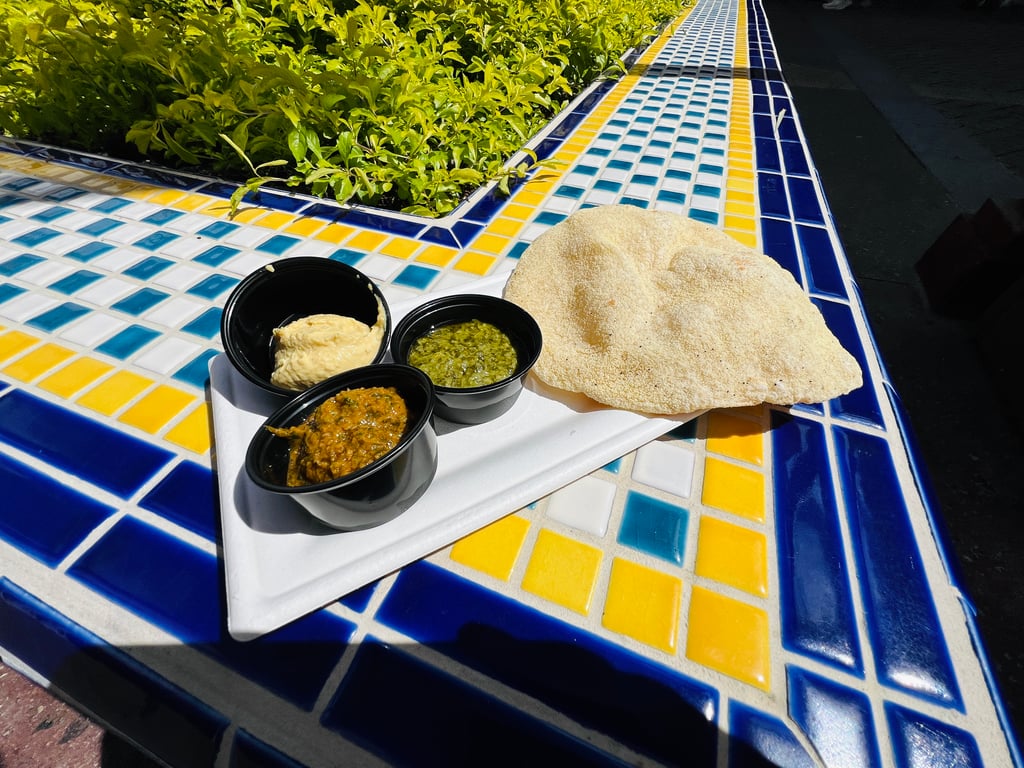 We stepped outside the bustling patisserie to discover our next stop from Rachel: the Norway pavilion for EPCOT’s classic Norwegian School Bread ($4.79). While we were on our way to the Norway pavilion, I asked the family if there were any other snacks that we would be passing along the way. Mom Kimi mentioned that her snack could be found in the Morocco pavilion, so we made a a pitstop at Tangierine Café for their Stone-baked Moroccan Bread ($5). The bread comes with three dips: hummus, Chermoula, and Zhoug. If you’re looking for a snack, that’ll have you trying something different and something with an international flare, this is the perfect go to. The Zhoug had bright notes and olive oil for days. The Chermoula had a wonderful autumnal flavor, and you absolutely cannot go wrong with Tangierine Café’s hummus. In fact, if you’d like to, you can ask for all three dips to be hummus, which I highly recommend for a filling protein-packed park day snack.