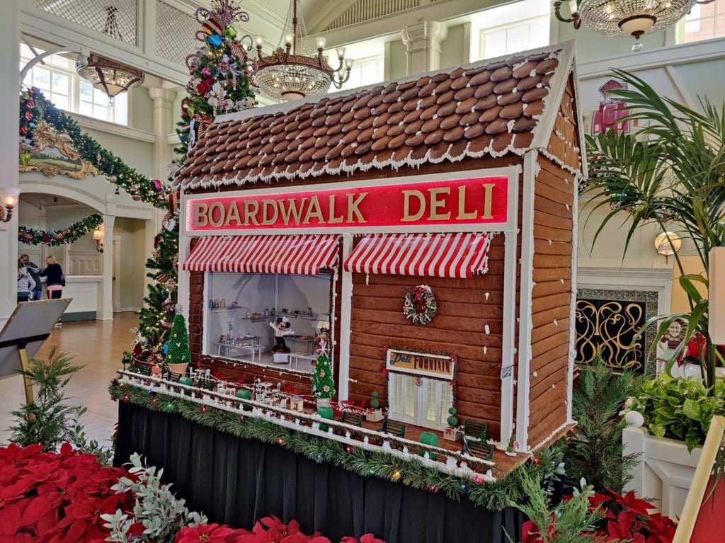 At the BoardWalk, you’ll typically find a gingerbread display in the lobby that features the restaurants along the boardwalk. Last year, the pastry team created a gingerbread BoardWalk Deli.