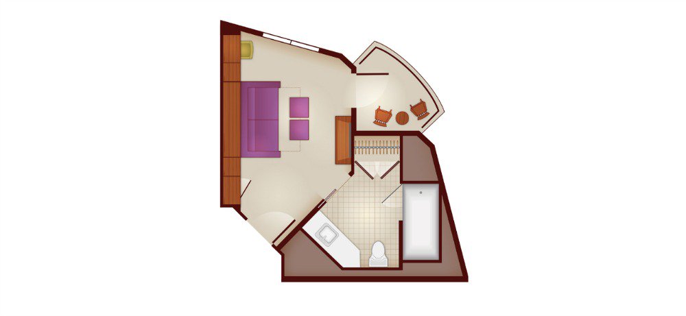 The entire floor plan covers 255 square feet. Disney doesn’t even pretend this space is for anybody but couples. There’s even a limit of two guests in the room!