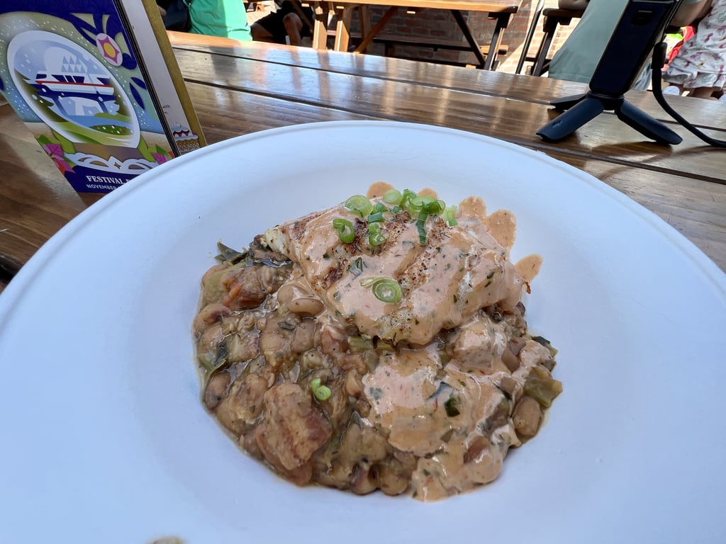 Don’t miss the Blackened Catfish with Hoppin John. This dish is tender, generously seasoned, and more filling than many festival items. The black eyed peas, rice, and collard greens bring a rich Southern comfort flavor that feels perfect for the season. It’s also marked safe for several common allergies. I know that fish might not be the first you think of when you’re strolling around the World Showcase, but trust me when I say that this dish is worth a stop.